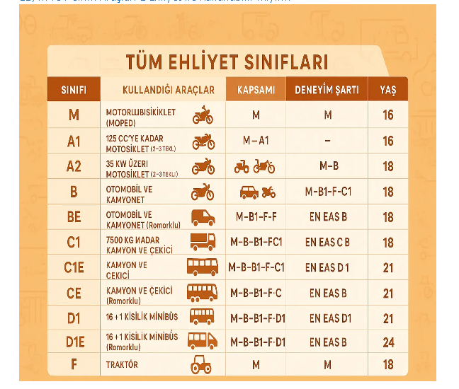 Ehliyet sınıflarının farkları nelerdir?