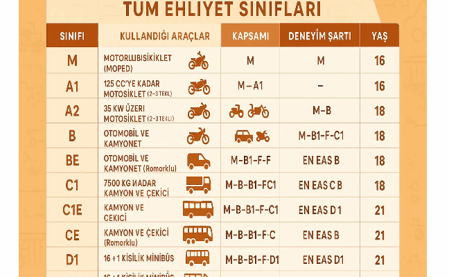Hangi Ehliyet Sınıfları Hangi Araçları Kapsar